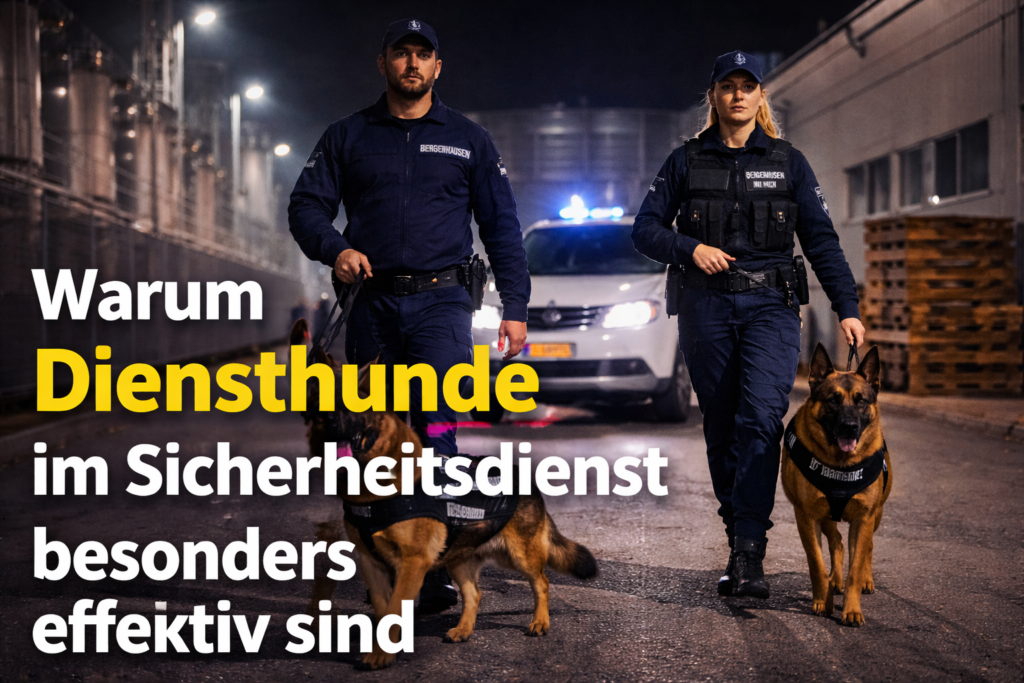 Der Sicherheitsdienst BERGERHAUSEN – Sicherheit mit Hund setzt gezielt auf solche Teams, um Gewerbeobjekte, Industrieanlagen und Veranstaltungen effektiv zu schützen.