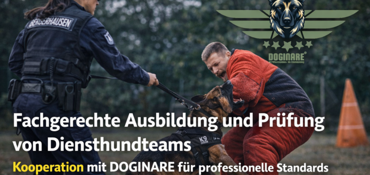 Kooperation mit DOGINARE für professionelle Standards im Sicherheitsdienst Professionelle Diensthundteams müssen ihre Einsatzfähigkeit regelmäßig nachweisen. Dazu gehören: Regelmäßige Trainings und Prüfungen sorgen dafür, dass Diensthundteams auch im praktischen Einsatz zuverlässig arbeiten. Professionelle Diensthundteams im...